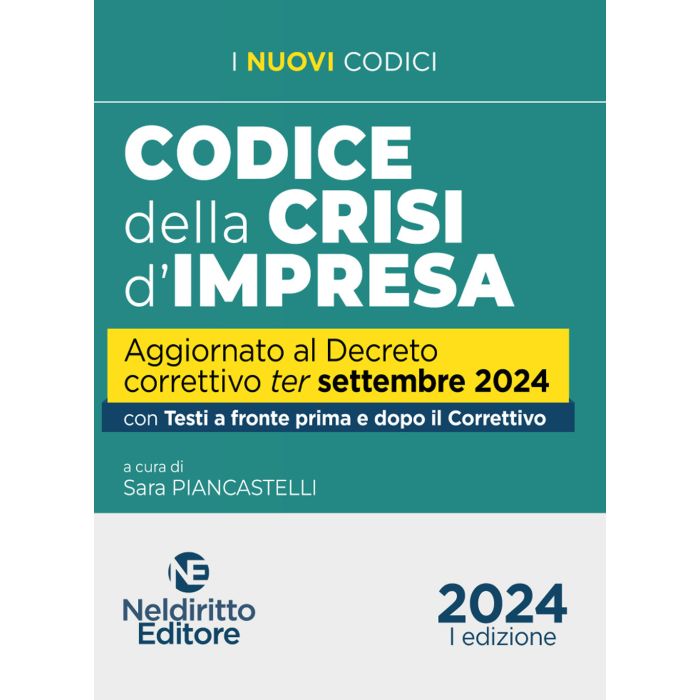 Il Decreto correttivo ter del Codice della crisi d'impresa, oltre a contenere disposizioni di coordinamento e aggiornamento, scioglie numerose questioni interpretative emerse nei primi anni di applicazione del Codice. Tantissime le novità, tra l'altro in tema di: composizione negoziata, anticipata emersione, piano attestato di risanamento, convenzione di moratoria, c.d. Cram-down fiscale, piano di ristrutturazione soggetto ad omologazione, procedure di composizione delle crisi da sovrindebitamento, concordato minore, concordato preventivo, liquidazione giudiziale, liquidazione controllata, esdebitazione, gruppi di imprese, disciplina del curatore, commissario giudiziale, liquidatore. Il Codice della crisi d'impresa, Neldiritto Editore, settembre 2024, rivolto a avvocati, magistrati, studiosi, consente di visualizzare in modo chiaro e immediato tutte le novità introdotte dal Decreto correttivo ter. Il Volume si articola in due Parti. La prima reca per intero il Codice della crisi d'impresa e contiene: testi a fronte con evidenziazione delle modifiche apportate; apposita tavola sinottica, posta in apertura della prima Parte, recante un riepilogo di tutte le disposizioni modificate, utilissima per avere immediata contezza delle novità, di cui è così resa agevole la ricerca. La seconda Parte, articolata in più Sezioni, dà invece conto delle modi?che introdotte dal Decreto correttivo ter a Leggi diverse dal Codice della crisi d'impresa. Completa l'Opera un corposo Indice analitico.