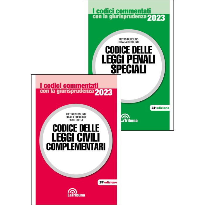 Queste Opere forniscono ai lettori il testo aggiornato delle principali leggi complementari al Codice civile e al Codice penale, commentate con la giurisprudenza più recente e significativa. La selezione delle leggi complementari comprende materie fra le quali segnaliamo: Abusi familiari; Agricoltura; Alimenti; Animali; Appalti pubblici; Armi; Assegno bancario; Assicurazioni; Beni culturali; Caccia; Cambiale; Circolazione stradale; Commercio con l'estero; Collocamento di manodopera; Consulenti tecnici; Contrabbando doganale; Commercio elettronico; Diritto d'autore; Discriminazioni; Divorzio; Edilizia e urbanistica; Elezioni; Emigrazione; Fallimento; Finanza; Giudice di pace; Guardia di Finanza; Immigrazione; Inquinamento; Integrazioni salariali; Iintermediazione finanziaria; Lavoro; Maternità; Misure di prevenzione e antimafia; Navigazione; Patrocinio dei non abbienti; Polizia di Stato; Proprietà industriale; Prostituzione; Privacy; Pubblico impiego; Responsabilità degli enti; Riciclaggio; Rifiuti; Sanità; Scommesse clandestine; Sequestri di persona; Sicurezza del lavoro; Sovraindebitamento; Stampa; Stupefacenti; Terrorismo; Vendite piramidali .