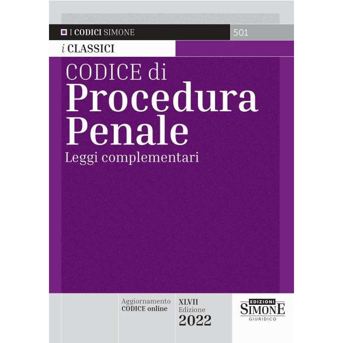 CODICE di Procedura Penale: I Codici classici Simone, di cui il Codice di Procedura Penale e leggi complementari fa parte, sono codici arricchiti da un utile corredo di note normative che permette un’immediata consultazione dell’articolato vigente e suggerisce originali collegamenti alla normativa speciale.