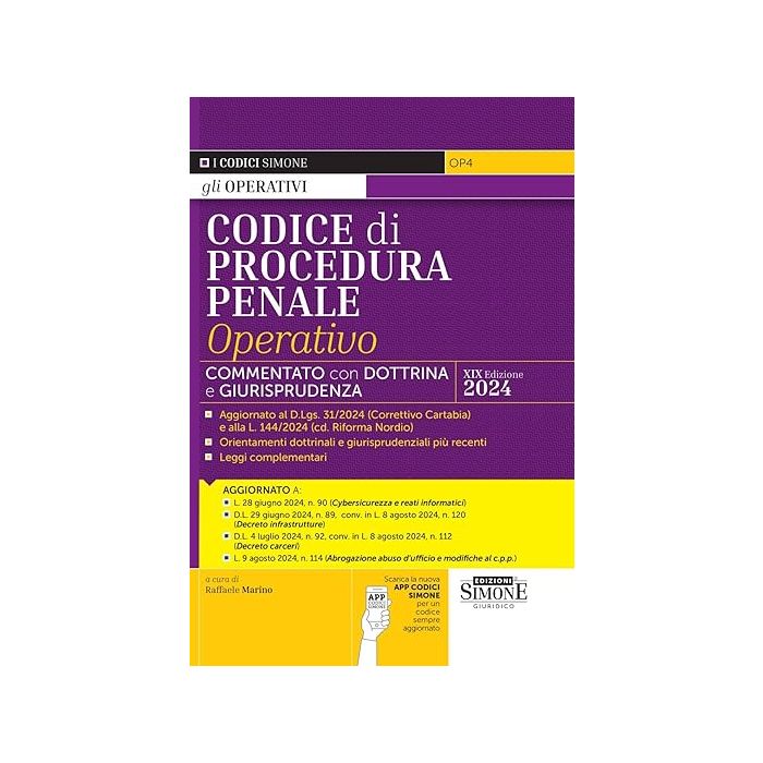Codice di procedura penale operativo 2024. Commentato/Annotato con dottrina e giurisprudenza (Codici Operativi) - Simone