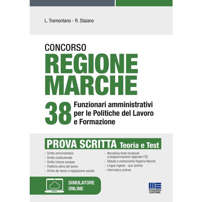 Il volume si presenta come utile strumento di preparazione alle prove del Concorso indetto dalla Regione Marche per 38 Funzionari amministrativi per le Politiche del Lavoro e Formazione. Il bando prevede di selezionare i candidati attraverso le seguenti prove: prova preselettiva: test su ragionamento logico, deduttivo o numerico; prova scritta: domande o elaborato su materie previste dal bando; prova orale: colloquio su materie previste dal bando e accertamento conoscenza lingua inglese e applicazioni informatiche più diffuse. Il testo propone una trattazione teorica sulle materie richieste ai candidati, ovvero: Diritto amministrativo; Diritto costituzionale; Diritto Unione europea; Politiche attive del lavoro; Diritto del lavoro e legislazione sociale; Normativa fondi strutturali e programmazione regionale FSE; Statuto e ordinamento Regione Marche. Nella sezione online collegata, raggiungibile seguendo le istruzioni riportate in fondo al libro, sono disponibili: quiz di lingua inglese; teoria e quiz di informatica; simulatore di quiz sulle materie trattate nel volume, lingua inglese, informatica e ragionamento logico. Luigi Tramontano Giurista, già docente a contratto presso la Scuola di Polizia economico-finanziaria della Guardia di Finanza è autore di numerosissime pubblicazioni giuridiche ed esperto di tecnica legislativa