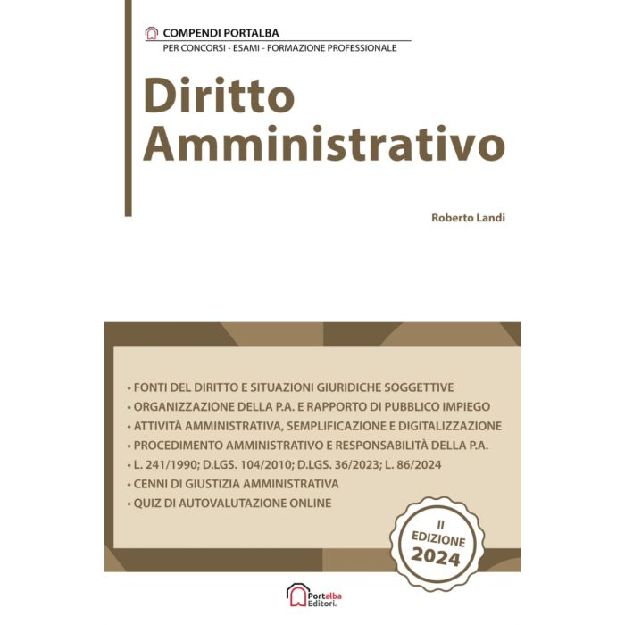 Diritto amministrativo. Per concorsi pubblici, Corsi di aggiornamento e Corsi di formazione (PNRR) 2024 (Roberto Landi - Portalba editore)