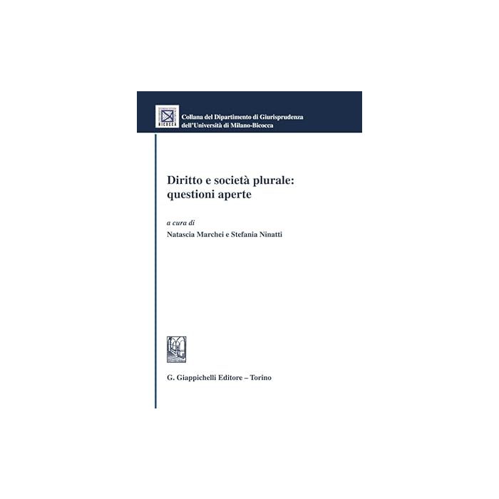 Il volume Diritto e società plurale: questioni aperte nasce nell'ambito del Progetto "Diritto e società plurale - Law and Pluralism" che ha consentito al Dipartimento di Giurisprudenza dell'Università di Milano Bicocca l'inserimento tra i 15 Dipartimenti giuridici nazionali qualificati come eccellenti dal MIUR per gli anni 2017-2022. Tra le numerose attività previste nel progetto e realizzate dal Dipartimento, nel quinquennio di riferimento, si inserisce la creazione dell'"Osservatorio di diritto e società plurale" che è nato come una banca dati della giurisprudenza europea e nazionale sui temi del pluralismo politico, etnico, religioso e culturale. In poco tempo, grazie all'entusiasmo e alla creatività di un gruppo di giovani studiosi - assegnisti, dottorandi e giovani ricercatori - guidati da alcuni docenti del Dipartimento, l'Osservatorio ha gradualmente assunto una nuova veste, si è arricchito di contenuti originali e di obiettivi inediti fino a diventare il nucleo propulsivo di un vero e proprio gruppo di ricerca che ha realizzato molteplici iniziative. Autori: Galli Luca; Cesarini Andrea; Pressacco Luca; Graziani Chiara; Negri Alessandro.