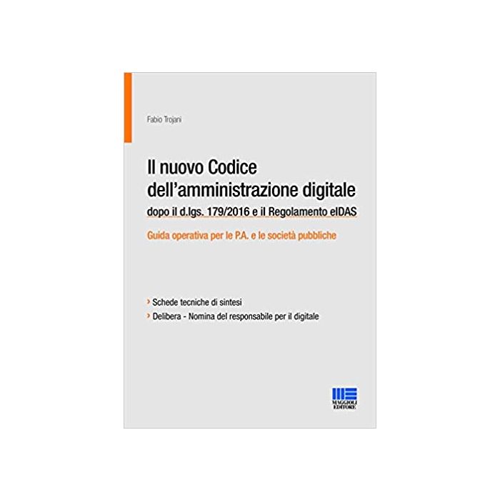 I capitoli quarto e quinto hanno un taglio pratico e approfondiscono le novità in tema di documento informatico e di firme elettroniche, richiamando ed esaminando anche le disposizioni del Regolamento eIDAS (entrato in vigore il 1° luglio 2016), cui il nuovo CAD espressamente rinvia. Corredano infine il testo una bozza di delibera per la designazione del responsabile per il digitale e una serie di schede tecniche aventi ad oggetto gli istituti e le novità in tema di digitalizzazione. La delibera, compilabile e personalizzabile, è disponibile al link indicato all’interno del volume. Fabio Trojani Avvocato, Specialista in studi sull’amministrazione pubblica – SPISA, Segretario Comunale. Autore di pubblicazioni in materia e docente in corsi di formazione presso enti pubblici e aziende sanitarie.