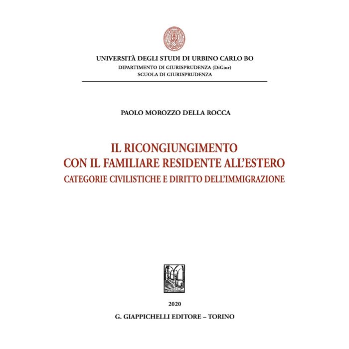 Come esplicitato già nel suo titolo, l'opera monografica £Il ricongiungimento con il familiare residente all'estero. Categorie civilistiche e diritto dell'immigrazione" offre un'esegesi ragionata e multilivello delle norme sul ricongiungimento familiare mettendole a confronto con gli istituti del diritto civile della famiglia, nella consapevolezza che la specialità del diritto dell'immigrazione e della libertà di circolazione non possa tuttavia contraddire princìpi fondamentali del diritto delle relazioni familiari e richiede comunque il rispetto di canoni di coerenza, proporzionalità e ragionevolezza. Ne emergono indicazioni e prospettive utili sia per l'operatore del diritto che per l'interprete desideroso di ricostruire la coerenza a sistema delle norme e degli orientamenti giurisprudenziali.