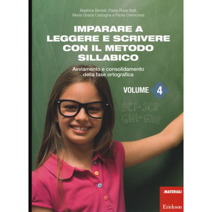 Imparare a leggere e scrivere con il metodo sillabico è una serie di volumi che illustrano un metodo di avvio e promozione del processo di alfabetizzazione incentrato sull'utilizzo di sillabe. Tale metodo si propone di: utilizzare la consapevolezza sillabica già presente in bambini non alfabetizzati come "abilità ponte" per favorire il raggiungimento di una matura consapevolezza fonemica; basare la corrispondenza tra segmenti di parole orali e segmenti di parole scritte su unità di base di "ampiezza intermedia" (le sillabe) che consentono il rapido recupero di rappresentazioni lessicali e ortografiche. Grazie a queste caratteristiche, il metodo sillabico favorisce l'insediamento del processo di alfabetizzazione anche in bambini che presentano elementi di fragilità rispetto al possibile avvio e sviluppo delle abilità di lettura e scrittura (soggetti con pregresse e/o persistenti difficoltà di linguaggio, soggetti bilingui con lingua italiana come L2, soggetti con disturbi globali dello sviluppo). Nel volume 4 vengono affrontate le principali "eccezioni" rispetto alla caratteristica di trasparenza (costanza della corrispondenza fonema-grafema) della lingua italiana, promuovendo il passaggio dalla modalità fonologica alla modalità lessicale di letto-scrittura, secondo il modello a due vie, o dalla fase alfabetica alla fase ortografica, secondo il modello di Uta Frith.