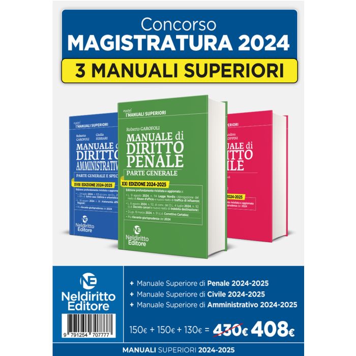Kit 3 manuali superiori: Manuale Superiore di Diritto Civile + Diritto Penale + Diritto Amministrativo 2024/2025 per concorso in magistratura (Garofoli - Neldiritto)