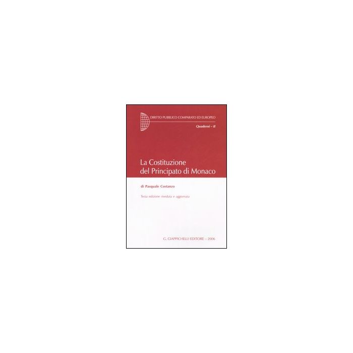 Il volume, giunto alla terza edizione, analizza la Costituzione del Principato di Monaco: offre cenni di storia costituzionale, mette in rapporto la costituzione del Principato con quella francese e con quelle europee, studia, tra l'altro, i caratteri fondamentali dell'ordinamento statale monegasco, il Principe e la funzione di governo, le libertà costituzionali e la giurisdizione.