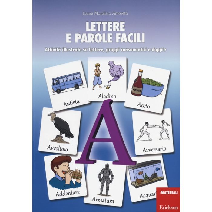 A volte per noia o antipatia per lo studio, in altri casi per disturbi specifici, fare conoscenza con le lettere può risultare difficile. Per evitare intoppi l'ideale è un percorso chiaro, dinamico e divertente, ma soprattutto adattabile alle specificità del singolo alunno. Il volume, con 194 schede didattiche e illustrazioni di circa 600 vocaboli, è un valido strumento per i bambini che frequentano i primi anni della scuola primaria ma anche di preparazione nel passaggio dalla scuola dell'infanzia e per il recupero delle abilità di letto-scrittura. Ripartito in una parte di apprendimento e in una di consolidamento delle conoscenze, il testo propone consegne che permettono sia di scrivere sia di indicare la risposta corretta, in modo da essere accessibile anche ai bambini che presentano difficoltà di scrittura. Quattro percorsi graduati forniscono all'insegnante materiale suddiviso nelle sezioni Vocali, Consonanti, Gruppi consonantici e Doppie, con esercizi di: discriminazione di lettere, riconoscimento grafemico, individuazione del fonema con supporto visivo, individuazione della parte mancante, inserimento di una o più lettere con supporto visivo.