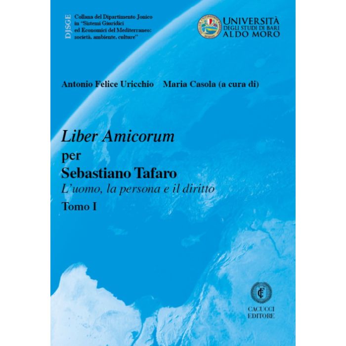 Dopo oltre di due anni di lavoro, viene pubblicato per i tipi dell’editore Ca- cucci di Bari, il volume, in due tomi, in onore del prof Sebastiano Tafaro, pro- fessore onorario di diritto romano nell’Università di Bari Aldo Moro e primo preside della facoltà di giurisprudenza di Taranto dello stesso Ateneo. E invero questi scritti, che grazie al forte impegno di chi ne ha curato la redazione, hanno ottenuto il pieno sostegno del Dipartimento Jonico e dell’Ateneo barese, voglio- no proprio essere testimonianza concreta dei sentimenti con i quali, negli anni, in molti ci si è legati a Sebastiano Tafaro.