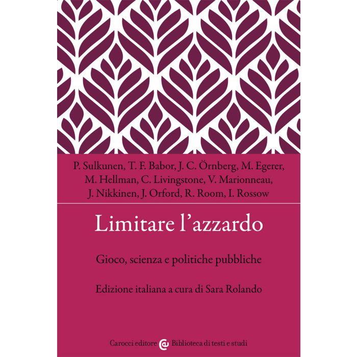 Il libro, frutto del lavoro di un gruppo di ricerca internazionale d'eccellenza coordinato da Pekka Sulkunen dell'Università di Helsinki, offre una riflessione sistematica sul gioco d'azzardo in un'ottica di salute pubblica. Si rivolge in particolare ai decisori politici, chiamati a prevenire e ridurre i problemi di varia natura provocati dalla crescita esponenziale dell'offerta avvenuta nel XX secolo in gran parte del mondo. Dopo aver descritto il contesto storico in cui l'industria del gioco d'azzardo si è sviluppata e la sua diffusione a livello globale, vengono discusse alcune delle attuali forme di regolamentazione sulla base delle evidenze scientifiche disponibili. L'analisi delle politiche pubbliche mette in evidenza gli ostacoli politici ed economici a una buona regolamentazione, ma porta anche solide ragioni a supporto dell'introduzione di interventi atti a proteggere la salute della popolazione. Gli argomenti sostenuti dagli autori sono più importanti che mai in Italia, dove un acceso dibattito sul tema coinvolge da anni governo, Regioni, Comuni, industria, gestori e società civile. Autori: Pekka Sulkunen, Thomas F. Babor, Jenny Cisneros Ornberg, Michael Egerer, Matilda Hellman, Charles Livingstone, Virve Marionneau, Janne Nikkinen, Jim Orford, Robin Room, Ingeborg Rossow.