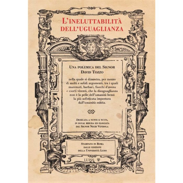 La disuguaglianza è uno dei temi chiave del presente. Sociologi, economisti, politologi e filosofi hanno raccontato come le disuguaglianze siano connaturate alle società umane, e che ciò che chiamiamo "civiltà" è inevitabilmente collegato alle brutali differenze di status, reddito, persino etnia e cultura. In questo saggio che rimanda direttamente, per taglio, acume e veemenza, ai grandi scritti dei polemisti dell'Illuminismo, David Tozzo sottolinea come, invece, gli esseri umani abbiano vissuto per 200.000 anni - il 95% della nostra storia - in società egualitarie non stratificate, in cui la cooperazione ma anche la condivisione erano norma unica e universale. L'autore, spaziando dalla storia politica alla letteratura, dimostra come il percorso della nostra società, a dispetto degli avvenimenti imprevedibili e spesso brutali, non assomigli a una traiettoria di rovina. Tutt'altro: la nostra epoca, che favorisce reciprocità e redistribuzione, compassione e compensazione, conoscenza e collaborazione porterà, ineluttabilmente, a un futuro più uguale per tutti.