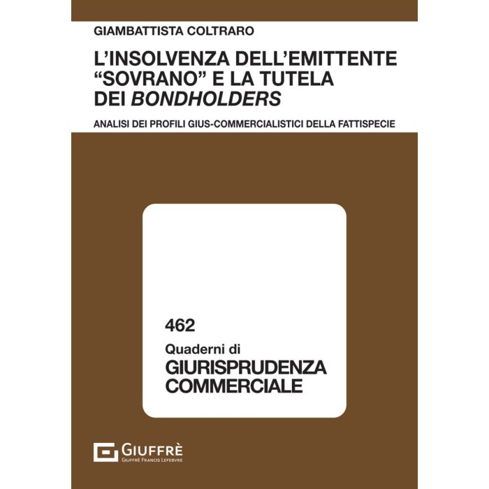 Il volume ha l'obiettivo di trattare i profili gius-commercialistici della fattispecie dell'insolvenza sovrana. In tale particolare situazione, la tutela dei creditori dello Stato "emittente" strumenti finanziari (cc.dd. titoli di Stato) trova un limite nei principi di natura pubblicistica strettamente correlati al concetto di "sovranità nazionale", che per gli studiosi del diritto commerciale suscita diversi spunti di riflessione, che sono stati oggetto di un particolare approfondimento all'interno del presente contributo per quanto concerne i profili di natura privatistica. All'interno del lavoro si è cercato di dimostrare che una procedura di natura liquidatoria e giudiziale è incompatibile con la natura "sovrana" dell'emittente, in caso di un suo possibile default; ed, in assenza di una normativa regolatrice sia a livello nazionale, che sovranazionale, si è preferito ritenere che gli interessi alla base della "crisi" di uno Stato Sovrano siano maggiormente soddisfatti con strumenti regolatori di tipo negoziale e di natura concordataria; non trascurando la rilevanza della normativa UE all'interno della presente fattispecie, che detta una serie di strumenti di "allerta precoce" al fine di prevenire il default dell'ente sovrano.