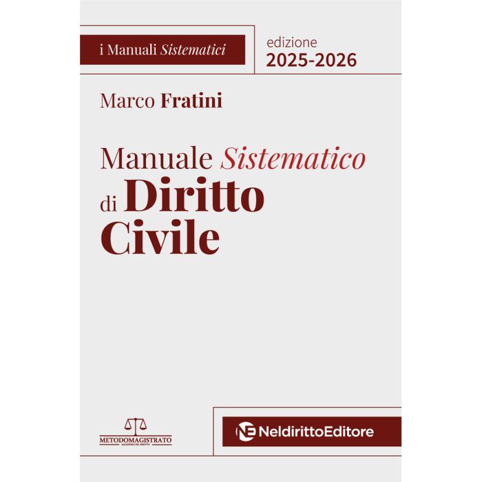 Il Manuale sistematico di diritto civile, edizione 2025/2026,è un'opera dai caratteri molto definiti. È sistematica, per consentire una visione del diritto civile ordinata attorno alla trama dei concetti giuridici. Ma è al contempo un'opera elastica, attenta alle evoluzioni della materia. È esaustiva: consente al lettore di acquisire, da una sola fonte, una conoscenza organica e completa degli istituti del diritto civile, delle questioni risolte e di quelle ancora aperte. È completa: affronta tutti gli istituti e gli ambiti del diritto civile, dalle fonti alla tutela dei diritti. È un'opera che vuol essere formativa, prima che informativa. E per questo è ragionata: espone una linea di pensiero e una posizione unitaria, senza limitarsi a una rassegna delle opinioni in campo. Mira a trasmettere una tradizione di dottrina e di giurisprudenza, proponendosi di guidare alla conoscenza e all'interpretazione del sistema del diritto civile. È uno strumento utile per acquisire una conoscenza dei fondamenti del diritto e della ratio di ogni regola che lo compone. È un'opera aggiornata, che affronta i temi più attuali del diritto civile e le questioni attualmente dibattute in dottrina e in giurisprudenza. Tutte le sentenze sono inserite in modo organico nel tessuto argomentativo sistematico, per consentire al lettore di sviluppare la propria capacità argomentativa. È un'opera che nasce dall'esperienza maturata dal suo autore in tanti anni di insegnamento ai futuri magistrati, e che mira a trasmettere, per iscritto, il valore di un metodo. E per questo è destinata proprio agli studenti di oggi, magistrati di domani. È anche un'opera che, per le sue caratteristiche, costituisce un utile strumento per gli attuali magistrati, per gli avvocati, per i notai e per gli studiosi del diritto.