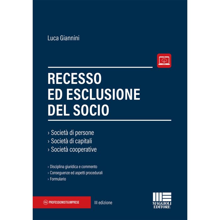 Il volume si propone come strumento di analisi delle problematiche connaturate a due eventi "traumatici" - seppur di origine opposta fra loro - nella vita di una società, con particolare riguardo agli sviluppi ed alle conseguenze, anche di ordine processuale, che ne discendono. La trattazione esamina in primo luogo l'istituto del recesso del socio, con gli opportuni risvolti fiscali e, nella seconda parte del volume, l'esclusione del socio di società di persone, di cooperative e di Srl. A conclusione, una corposa sezione di formule e schemi di atti, riportati anche on line per consentirne la compilazione personalizzata e la stampa. La trattazione, sebbene approfondita e condotta alla luce dei più recenti orientamenti dottrinali e giurisprudenziali, conserva comunque un taglio eminentemente pratico-operativo che ne agevola la consultazione.